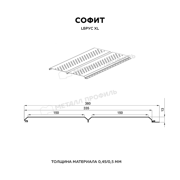 Софит МЕТАЛЛ ПРОФИЛЬ перфор. Lбрус-XL-14х335 (VikingMP-01-6005-0.45)